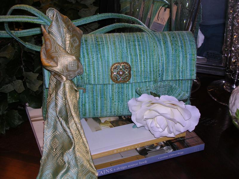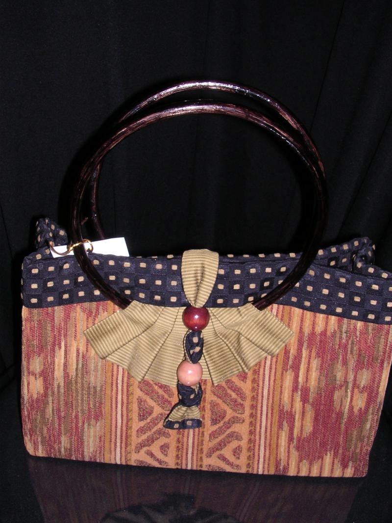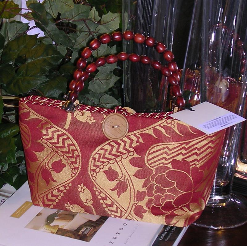 From Totes to Special Occassion handbags, each designed with care and fabric selection. Made from silk, taffeta, organdy, faux sued, leather or upholstery fabric. Some hand beaded with glass beads all with linings that are as beautiful as the purse itself. All conscientiously made with you in mind and finished with dress maker details.